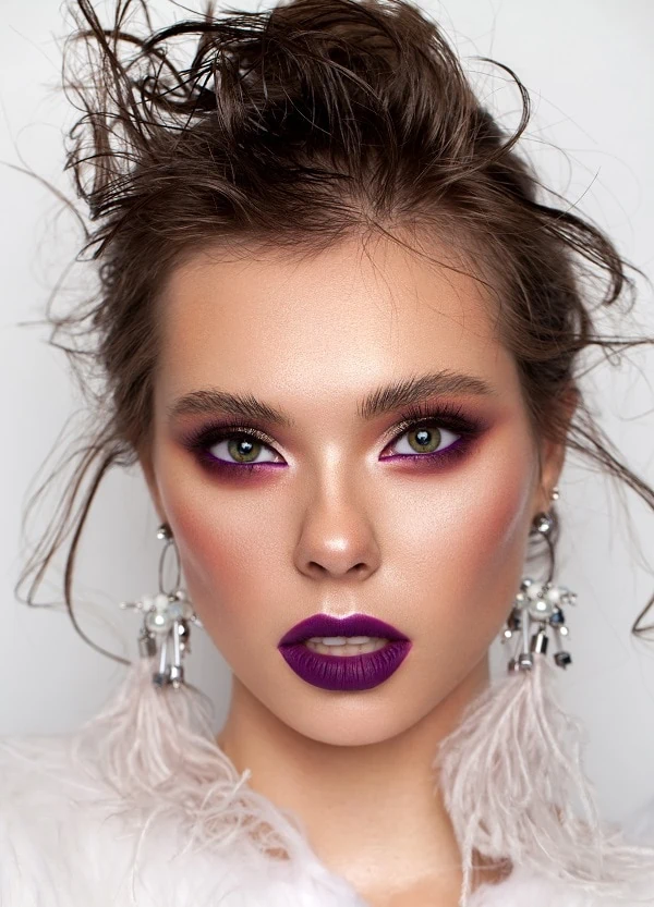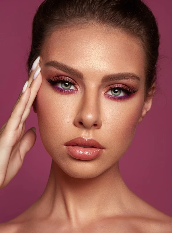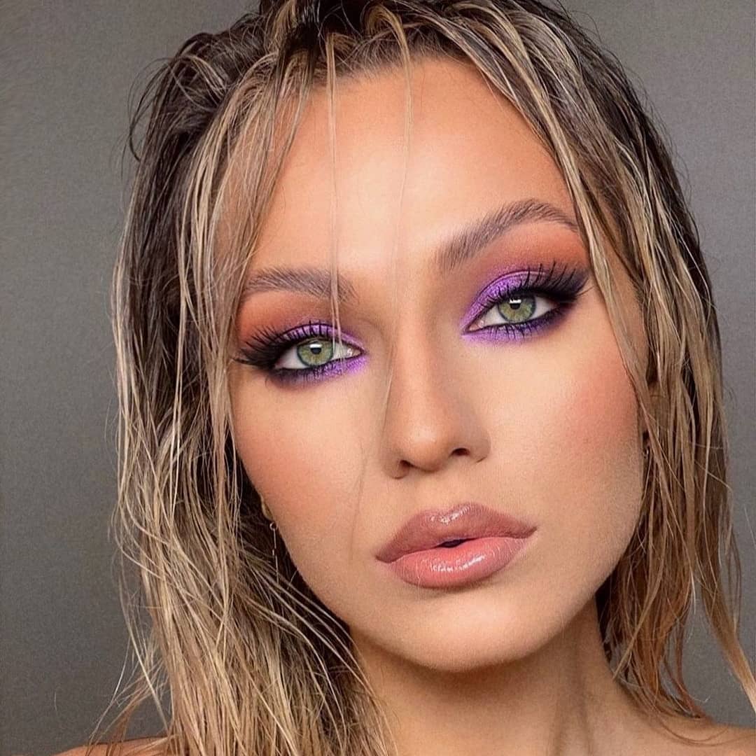 Для создания контраста лучшие цвета теней для зеленых глаз – это оттенки, противоположные зеленому цветовому кругу. Непосредственно напротив зеленого находится фиолетовый цвет. Это означает, что сам фиолетовый, а также любой из этого семейства цветов (розовый, сиреневый) помогут подчеркнуть зеленый цвет глаз.