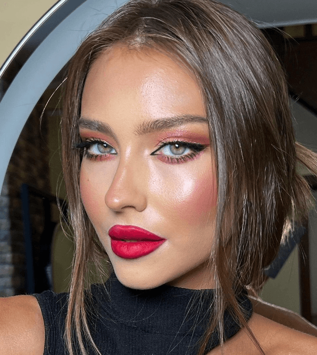 Также рядом с фиолетовым находятся розовые и красные цвета, прекрасно подчеркивающие светлые зеленые глаза. Но именно эти цвета (в которых много красного) наиболее сложны в использовании и требуют хорошей растушевки и умения отделить их с помощью аккуратной стрелки (чтобы избавиться от эффекта заплаканных глаз).